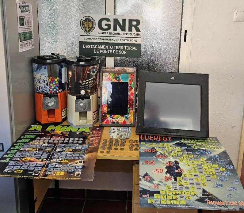 O Comando Territorial de Portalegre, através do Destacamento Territorial de Ponte de Sor, apreendeu quatro máquinas de jogo ilegal e identificou dois homens, de 32 e 44 anos, por jogo ilegal, no concelho de Ponte de Sor.