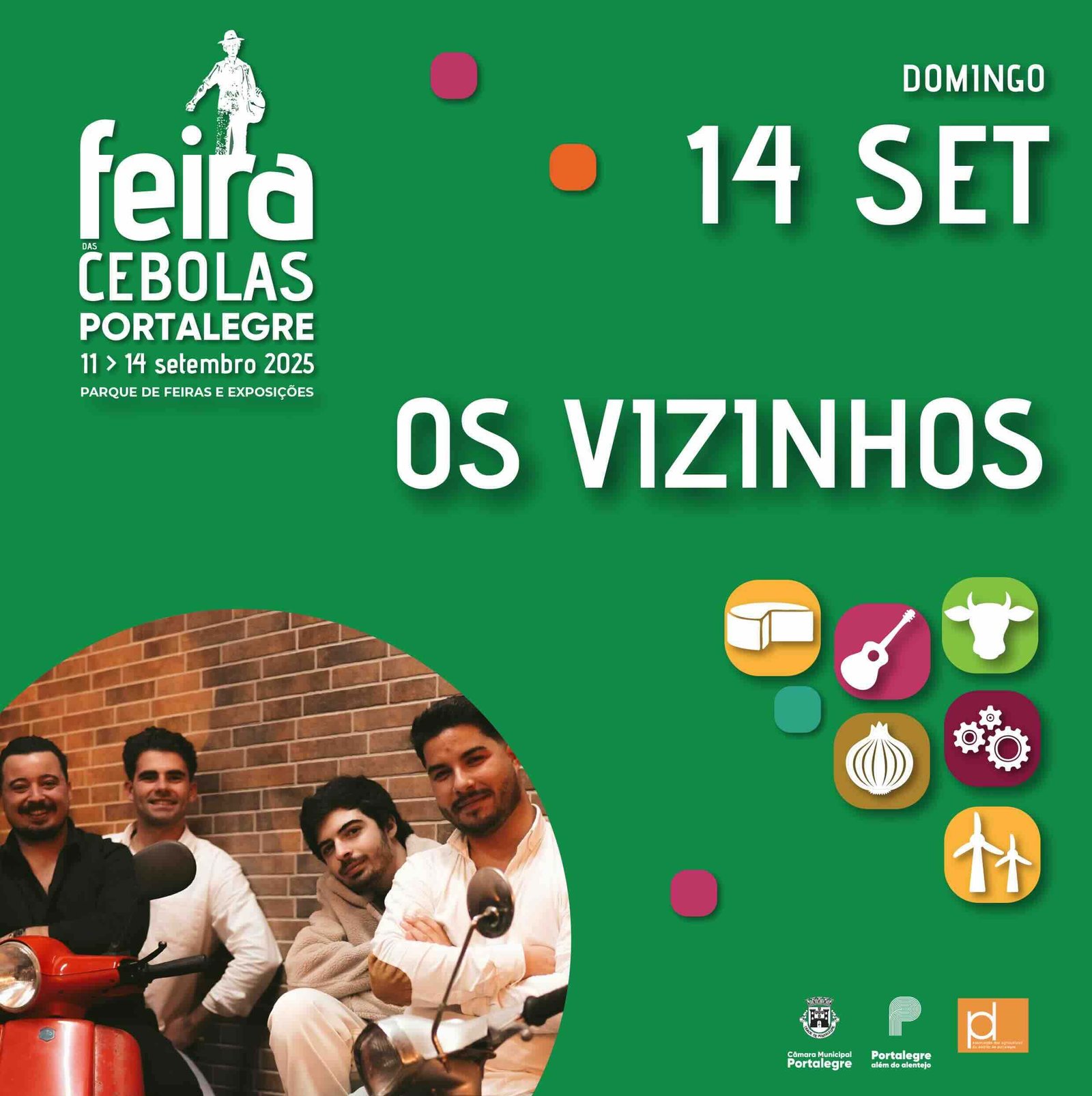Às 21h30, para terminar em beleza mais uma edição da Feira das Cebolas, Os Vizinhos atuarão no Palco Principal, onde decerto se ouvirá cantar o amor ao Alentejo e às nossas tradições.