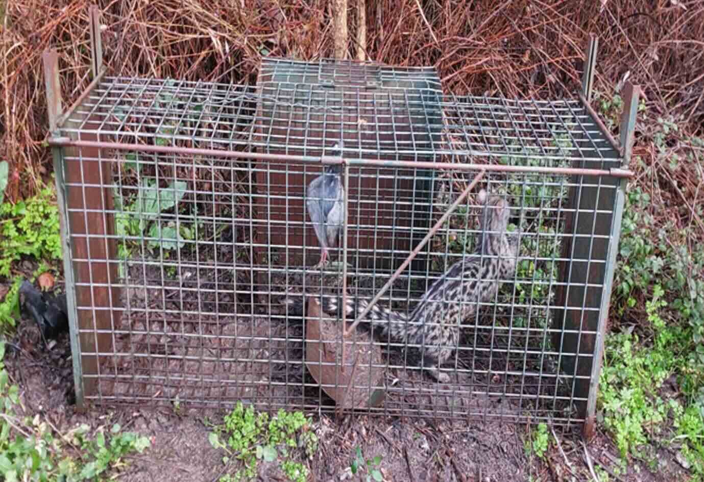 Durante as diligências foram, ainda, recolhidos dois cadáveres, um de gineta (genetta geneta) e um de saca-rabos (herpestes ichneumon) que se encontravam junto da gaiola/armadilha, que foi apreendida.