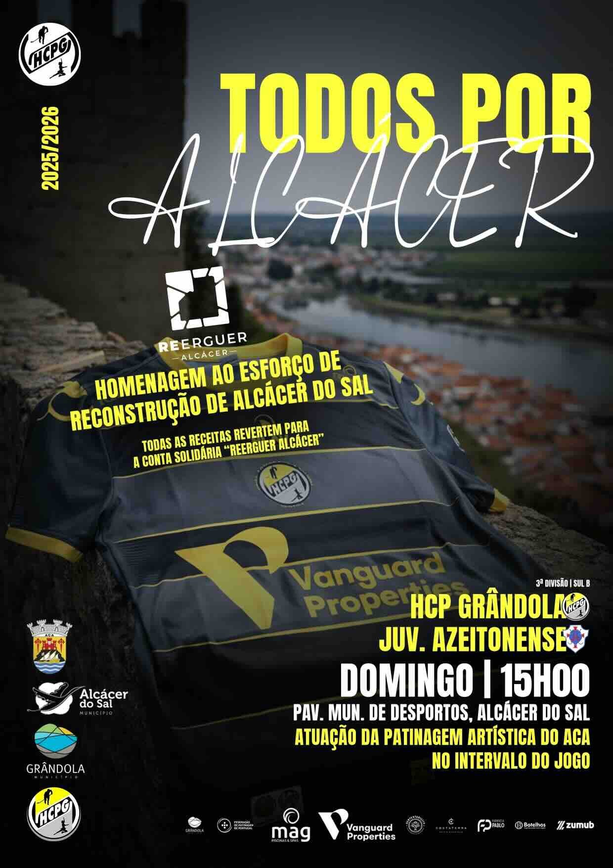 O jogo tem como tema “Todos por Alcácer”, em homenagem ao esforço de reconstrução de Alcácer do Sal, após a calamidade que assombrou aquela localidade no passado mês.